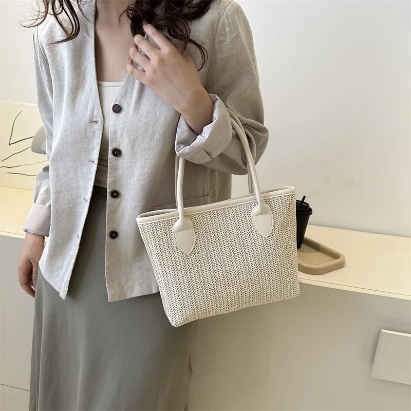 Hot Sale Straw Ladies' Handbag High Capacity Shoulder Tote Bags Summer Vacation for Women